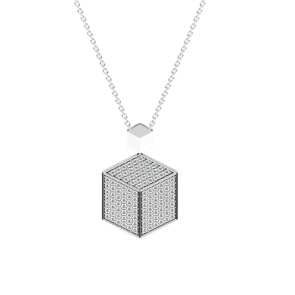 Step into a world of enchantment with our stunning pendant—an ethereal 2D ice cube design bedazzled by 114 natural diamonds, boasting a total weight of 0.40 carats. Immerse yourself in the allure of this exquisite creation, meticulously fashioned in 18K gold, available in yellow, white, or rose gold.