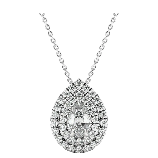 Ethereal Elegance by O'leone – A masterpiece that transcends time and trends. This pendant, featuring a Pear Shape centerpiece with a 0.50-carat natural diamond, is a symbol of enduring elegance. The double halo, adding 0.30 carats of diamonds, enhances its allure to a total weight of 0.80 carats.